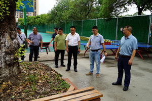 学校领导还检查了校园内环境及各种设施设备,查看篮球筐,乒乓球台等设施是否松动老化,要求做到设备老化及时更换,特别是在施工场地检查过程中,由于路面坑洼,存在较大安全隐患,为确保学生出行安全,检查组结合实际,对学生出行线路进行合理规划,设置安全标识,发送学生返校安全提示。