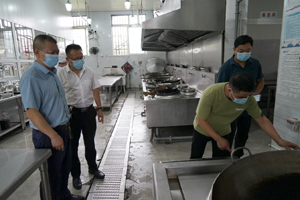 在检查学校食堂时,领检查组详细检查食堂的食谱记录表、餐具消毒记录,然后对食堂卫生情况、餐具消毒情况、各窗口厨房区域卫生情况、食堂留样食品情况、粮食及果蔬是否新鲜进行了检查。