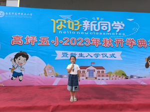 学校新教师梁岍玲作为教师代表发言,她表示将本着“一切为了学生,为了学生一切”的信念,以爱岗敬业的工作精神开拓进取、立足讲台,向课堂教学要效率,奏响提升教学质量的新凯歌。随后,一年级三班学生王堉瑶代表全体学生发言,她表示自己将努力学习,成为一名“德智体美劳”全面发展的五小新学子。