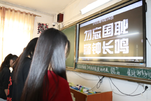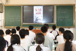 今天是“九一八”事变92周年,为缅怀先烈,感受民族精神,激发学生爱国热情,上午10点,邻水金鼎实验学校上空警报长鸣,各班级学生全体起立,低头铭记历史,缅怀先烈;希沃白板上滚动显示勿忘国耻、警钟长鸣等纪念标语。