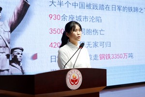 主题教育活动在庄严雄壮的国歌声中拉开序幕。便随着防空警报声,全体师生默哀三分钟。在一帧帧珍贵的历史画面中,学校历史教师郑新佩带着全体师生回到九十二年前,让大家了解到那段屈辱负重,又波澜壮阔的历史。专职副书记赵焱带来特殊党团课。“九一八事变”震惊中外,日本帝国主义悍然发动对我国的侵略,锦绣山河沦陷,同胞背井离乡,艰苦而漫长、伟大而壮烈的抗日战从此开始……那一张张见证历史的照片,一个个悲愤激扬的实例,是那么的的清晰与难忘:让同学们充分认识到新时代中学生要勿忘国耻,强我中华,为中华民族之复兴而努力学习。