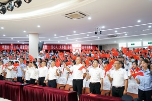 最后,全体师生起立合唱《没有共产党就没有新中国》,激情澎湃的歌声响彻校园,掀起主题教育活动新高潮!