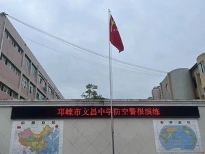 2023年9月18日,邛崃市文昌中学校举行了“九·一八”事变纪念日活动暨防空警报演练活动。上午十点,随着防空警报的响起,文昌中学全体师生进行了默哀仪式。