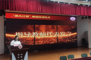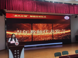 “经师易得,人师难求。”青年教师代表谭玉兰老师向为新老师提供学习平台的各位领导表示忠心的感谢,真诚的向一直指导他们工作、帮助他们进步的各位师傅们致敬!并表示将用心、虚心、潜心学习前辈们爱岗敬业、无私奉献的职业精神;严谨治学、认责负责的教学态度;尊重家长、团结同事的工作作风。相信,在新教师不断努力和诸位师傅的悉心指导下,新老师会以更快的成长速度,以更踏实的前进步伐,以更优异的教学质量,为学校的高质量发展添砖加瓦。