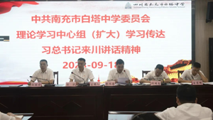 廖校长指出,习近平总书记这次来川视察作出的重要指示,视野宏阔、思想深邃、重点突出,是习近平新时代中国特色社会主义思想“四川篇”的最新发展,是对新时代治蜀兴川事业发展最权威最深刻最有力的科学指引,为四川未来发展提供了根本遵循。学校党委要站在坚定拥护“两个确立”、坚决做到“两个维护”的政治高度,自觉把学习贯彻习近平总书记来川视察重要指示精神作为当前和今后一个时期的重要政治任务来抓。全体党员干部和教职员工要始终铭记关怀、不负重托、感恩奋进,不折不扣推动习近平总书记来川视察重要指示精神在白塔中学落地落实、见行见效。
