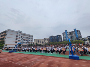 一抹中国红,一腔爱国情。伴随着雄壮的国歌声,五星红旗冉冉升起。全体师生肃立,学生行少先队队礼,表彰大会就此拉开帷幕。