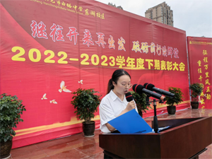 班风优良,作风过硬;教风严谨,学风浓厚。老师德高身正,博学儒雅;管如严父,爱如慈母。学生志存高远,文明守纪;意气风发,拼搏进取。白塔中学政教处副主任缪超宣读了荣获2022--2023学年度下期“流动红旗先进班集体”称号的班级名单。