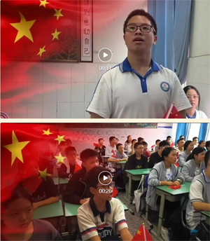 主题班会上,班主任们带领同学们历览祖国山河。从百废待兴到繁荣富强,从方志敏、张自忠、钱学森对“何谓爱国”的回答到青少年如何勇担使命。同学们直抒胸臆,为国骄傲,并纷纷表示他们会理性爱国,奋斗自强。