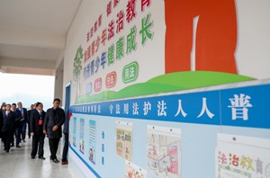 2023年12月4日,四川省华蓥市人大代表在法治教育特色学校高兴镇海军小学视察法治文化墙。