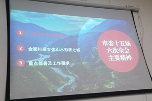 会上,彭州市人民政府发展研究中心副主任杜保宁同志围绕“全面建设立体山水彭派之城”主题,以ppT电子频演示和讲解的方式,向在场老科学技术工作者全面解读了中共彭州市委十五届六次全会精神,细致介绍了当前彭州市委市政府确定的工作重点。