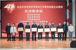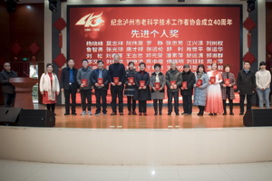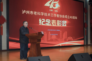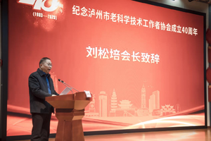 大会在与会人员庄严的国歌声中开场,刘松培会长代表市老科协在纪念大会上致辞。他在致辞中指出,泸州市老科协自泸州市1983年省辖时建会,至今已四十年。建会以来,在泸州市委、市政府的正确领导下,在省老科协和市科协的指导和支持下,市老科协团结带领全市老科技工作者,以政治引领加强组织建设,基层组织和会员队伍不断发展壮大;以专题调研推进建言献策,赢得了党委、政府的肯定和支持;以服务“三农”助力“脱贫攻坚”和乡村振兴发展,“百村千户科技促进行动”成绩显著;以科普“五进“提升全民科学素质,在乡村和街道、社区和校园,社会影响广泛,成效显著;以多种形式开展康乐建家活动,进一步增强了协会的吸引力、凝聚力和影响力。特别是2015年换届以来,市老科协新一届理事会、常务理事会在前辈老科技工作者们通过32年艰苦奋斗奠定起来的坚实基础上,带领全市老科技工作者继续奋斗,在组织建设、建言献策、“三农服务”、科学普及等方面又取得了新的发展和作出了新的贡献。2022年泸州市老科协获得“中国老科学技术工作者协会奖“光荣称号。