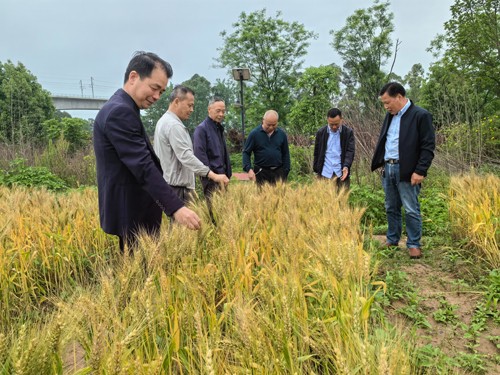 邓井关街道新湾村小麦示范片地处釜溪河沿岸,水源充足,有利于粮食作物生长。会员们来到邓井关新湾村麦-玉-豆带状复合种植示范片,映入眼帘的是已进入灌浆期的小麦,微黄的麦穗长势喜人,预计在5月上旬可收获。据悉,今年我县主推小麦品种是绵麦902,它具有矮杆大穗、抗倒伏力强、抗病性好、丰产性突出的优点,亩产约250公斤左右。同时,我县积极探索新型农耕方式,在示范片进行了玉米和大豆套种,以最大限度发挥土地潜力,实现一地三收、麦玉豆轮作,促进农业增效农民增收。